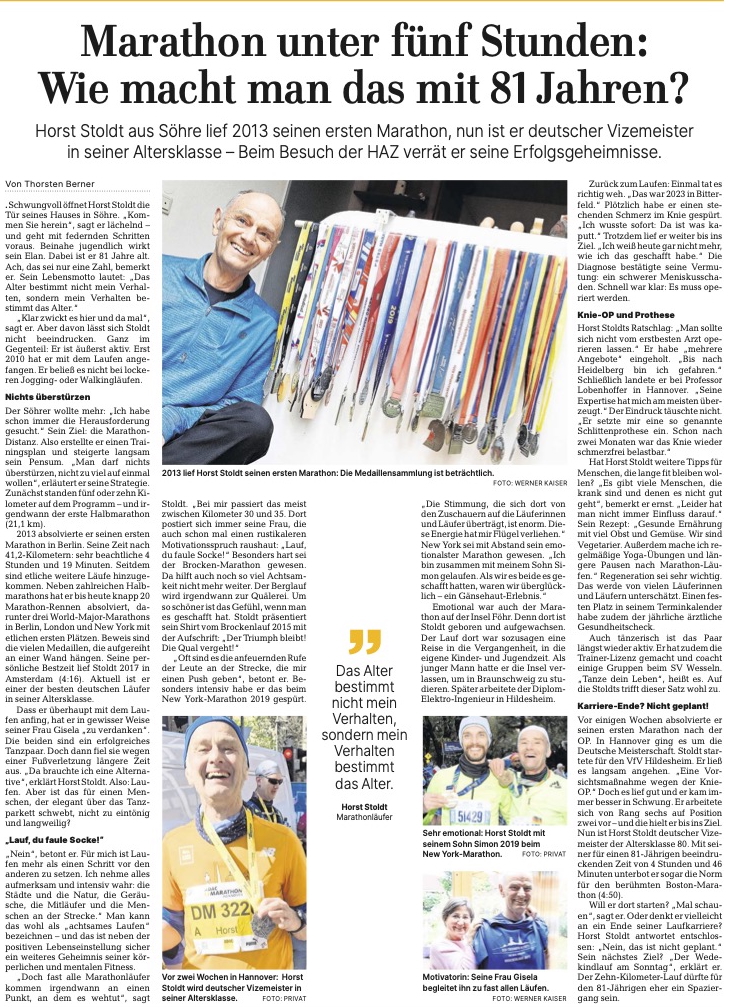 Ein Beispiel findet sich in dem Artikel der Hildesheimer Allgemeinen Zeitung, verfasst von Thorsten Berner. Mit Einverständnis des Patienten nachstehend der Bericht. Das Team der go:h wünscht auch weiterhin viel Freude und Erfolg im Laufsport!